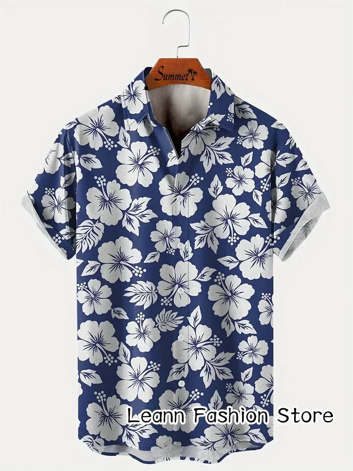 Men Hawaiian Shirt Summer Floral Print Short Sleeve Beach