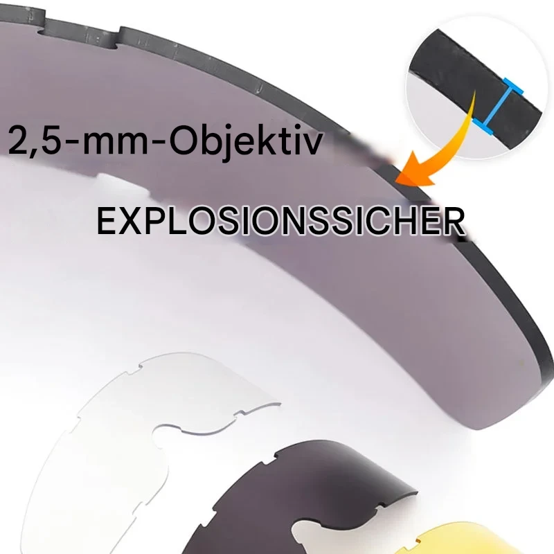 • Gläser: Austauschbar (Klar, Gelb, Schwarz)