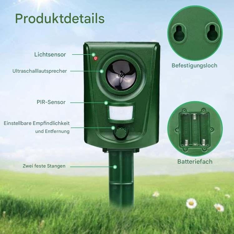 - Typ: Ultraschall-Tierabwehr mit Bewegungsmelder